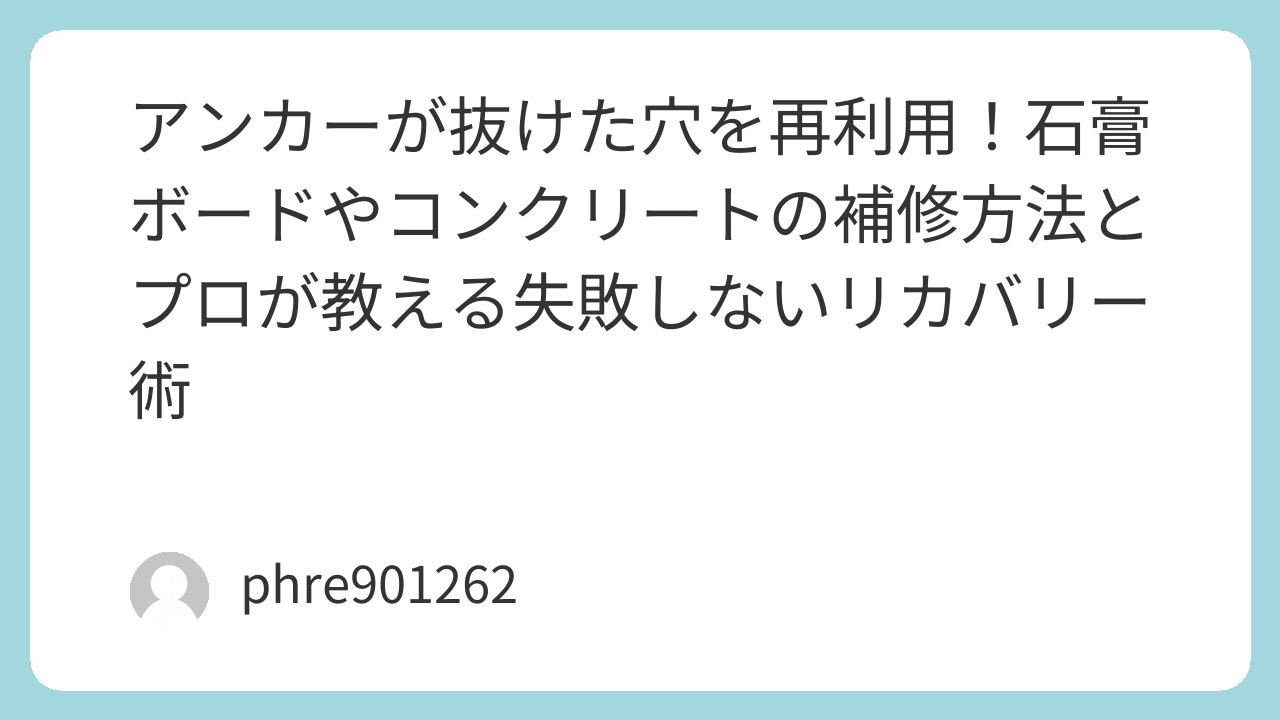 アンカーが抜けるのは、ステップアップの証でもあります。適切な補修方法をマスターして、より安心・安全なDIYライフを楽しんでください。