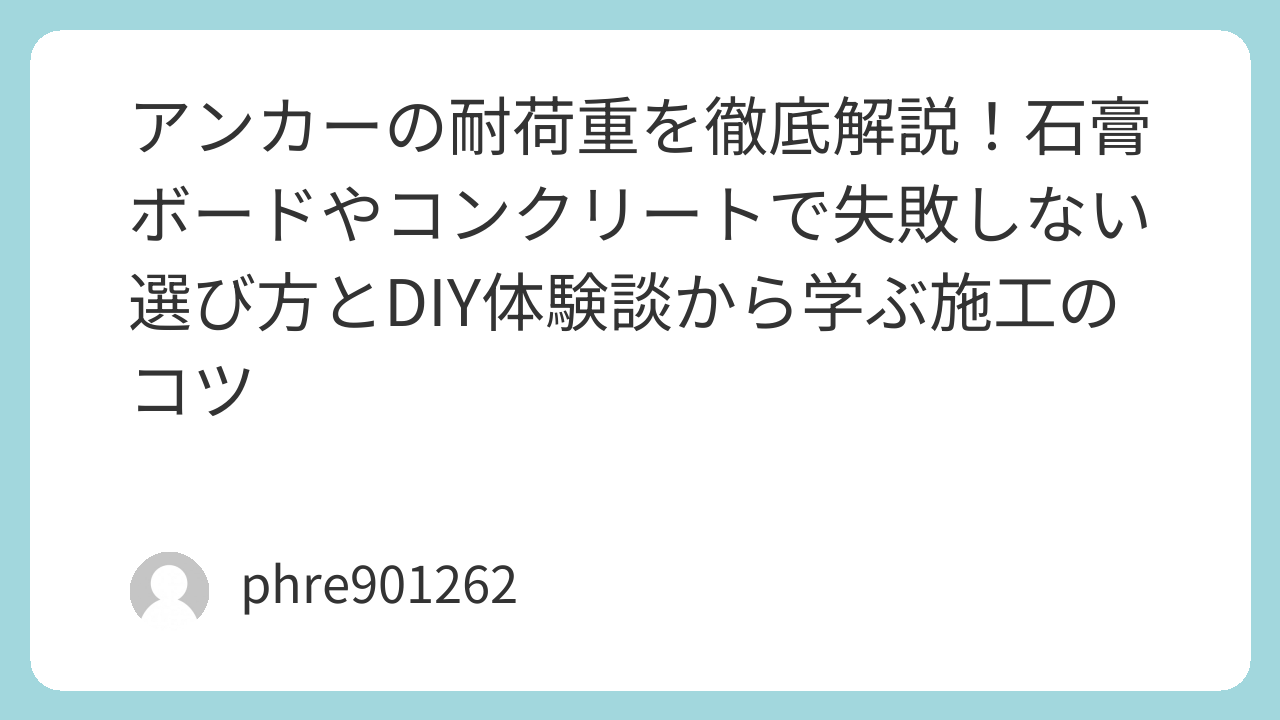 アンカー選びで迷ったら、「ワンサイズ上の強度」を選び、荷重を「複数の点」に分散させることを意識してください。1本のアンカーに運命を託すのではなく、3本、4本と分散して固定することで、壁への負担は劇的に減ります。