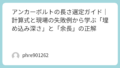 4. ハンマーの「音」を聞くアンカーを叩き込む際、音が「コンコン」から「キンキン」という高い金属音に変わったら、底まで到達したサインです。それ以上叩くとアンカーが変形するので注意。