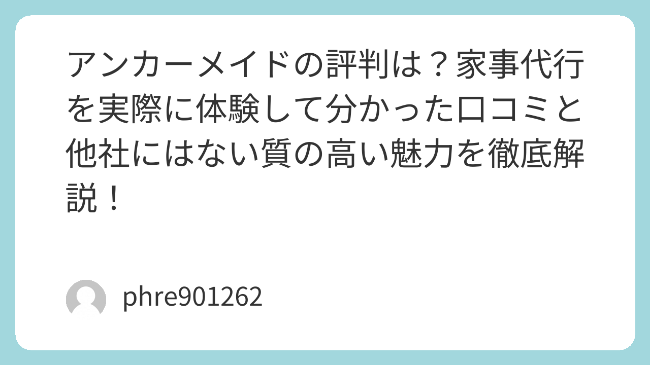「仕事から帰ってきたら、家がモデルルームのように綺麗になっていたら……」そんな淡い期待を現実に変えてくれるのが[amazon_link product=”アンカーメイド”]の家事代行サービスです。多くの家事代行サービスが乱立する昨今ですが、その中でも「質の高さ」で一線を画すと言われる[amazon_link product=”アンカーメイド”]を、実際に利用した方の体験談をベースに深掘りしていきます。