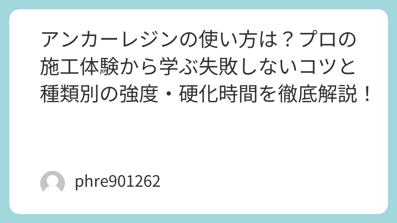 「コンクリートにボルトを固定したいけれど、金属アンカーでは強度が不安……」「絶対に抜けない固定をしたい」という場面で、最後に頼りになるのがアンカーレジン(接着系アンカー)です。しかし、いざ使おうとすると「液が固まらない」「強度が足りない」といった失敗談も後を絶ちません。