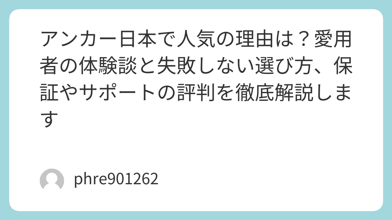 まとめ:アンカーは「迷ったらこれ」と言える日本のインフラ的存在