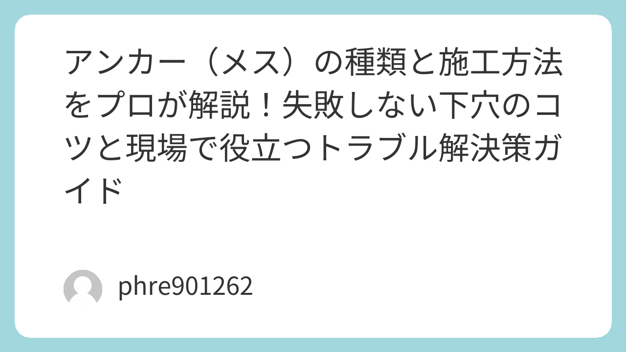 アンカー(メス)の種類と施工方法をプロが解説!失敗しない下穴のコツと現場で役立つトラブル解決策ガイド