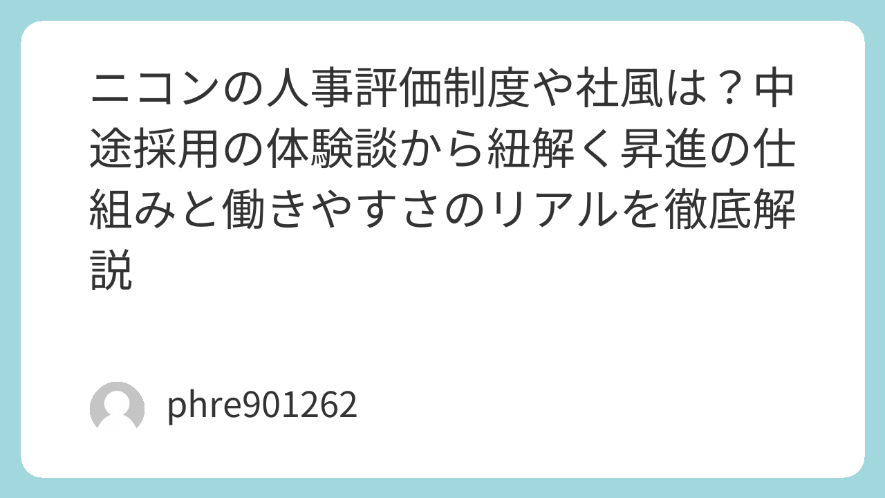ニコンの評価は、主に「業績評価」と「行動評価(コンピテンシー)」の二軸で行われます。実際に中途で入社したエンジニア(30代後半)はこう語ります。