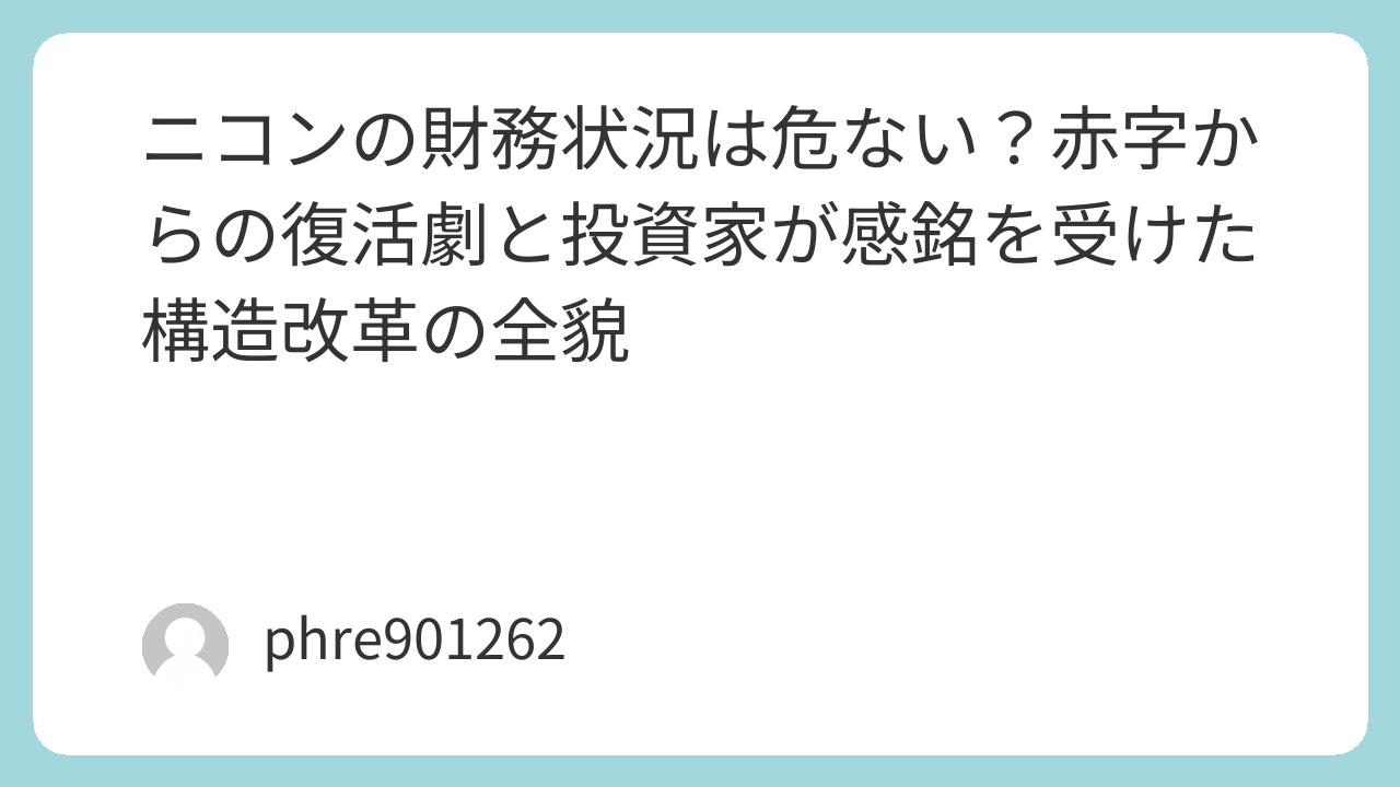 今回は、一人の投資家・ビジネスファンとしての視点を交え、ニコンの財務がどのように「死の淵」から生還し、次なる成長フェーズへ向かっているのかを徹底解説します。