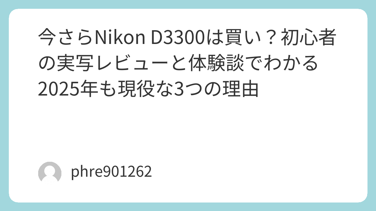 発売から年月が経った今、巷ではミラーレス一眼が全盛期です。しかし、実際にこの小さな一眼レフを握りしめて街に飛び出してみると、カタログスペックだけでは語れない「撮る楽しさ」の原点が詰まっていました。今回は、私が実際に[amazon_link product=”Nikon D3300″]を使い倒して感じたリアルな体験談を交え、なぜ2025年の今でもこのカメラが最高の一台になり得るのかを徹底解説します。