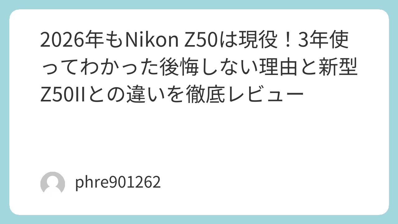 後継機である[amazon_link product=”Nikon Z50II”]が登場した今だからこそ、あえて初代機を選ぶ価値はどこにあるのか。実際に数万枚のシャッターを切ってきたユーザーの視点で、その「正体」を紐解きます。