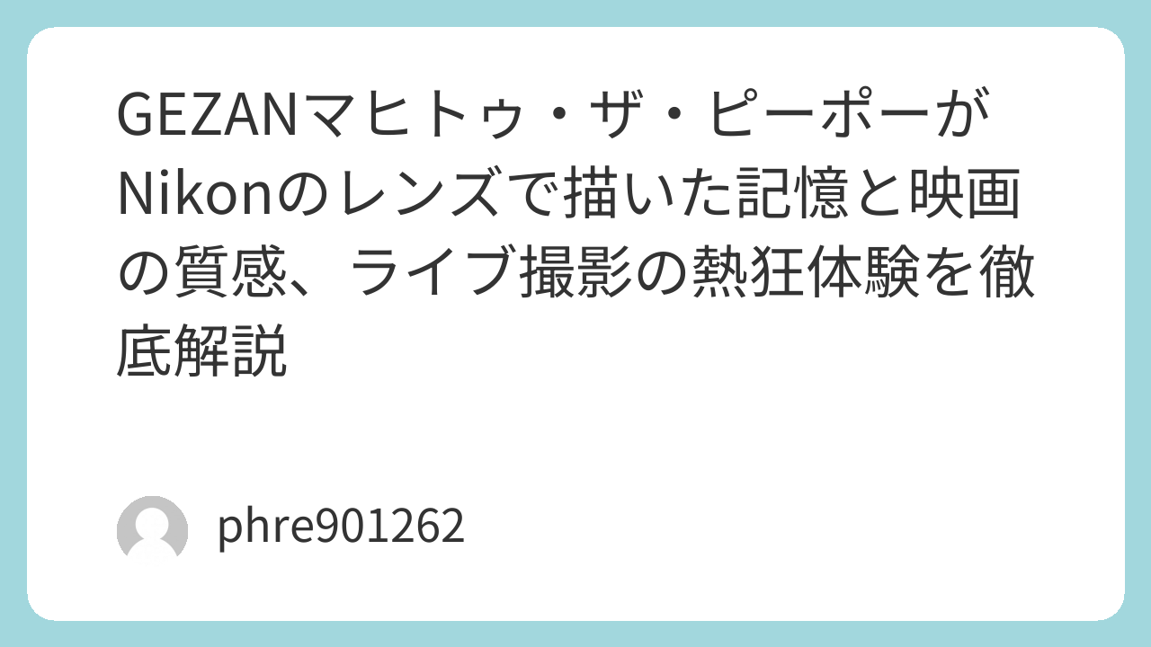 GEZANマヒトゥ・ザ・ピーポーがNikonのレンズで描いた記憶と映画の質感、ライブ撮影の熱狂体験を徹底解説
