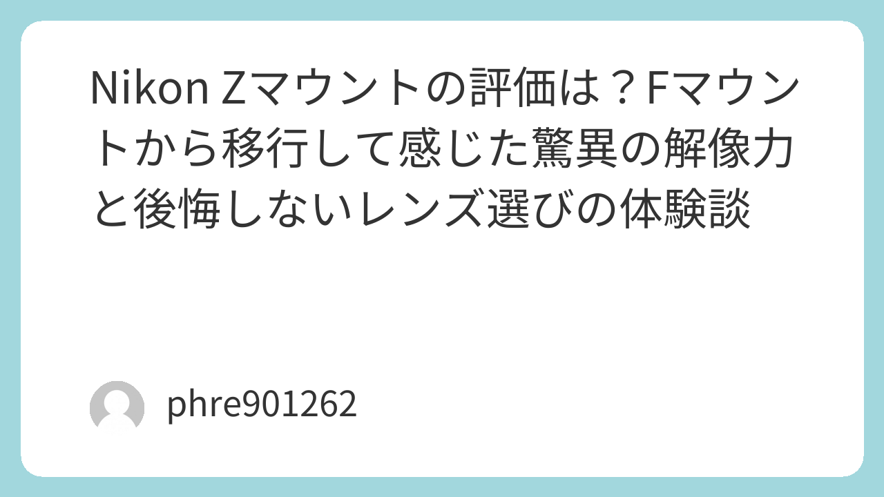 Nikon Zマウントの評価は?Fマウントから移行して感じた驚異の解像力と後悔しないレンズ選びの体験談