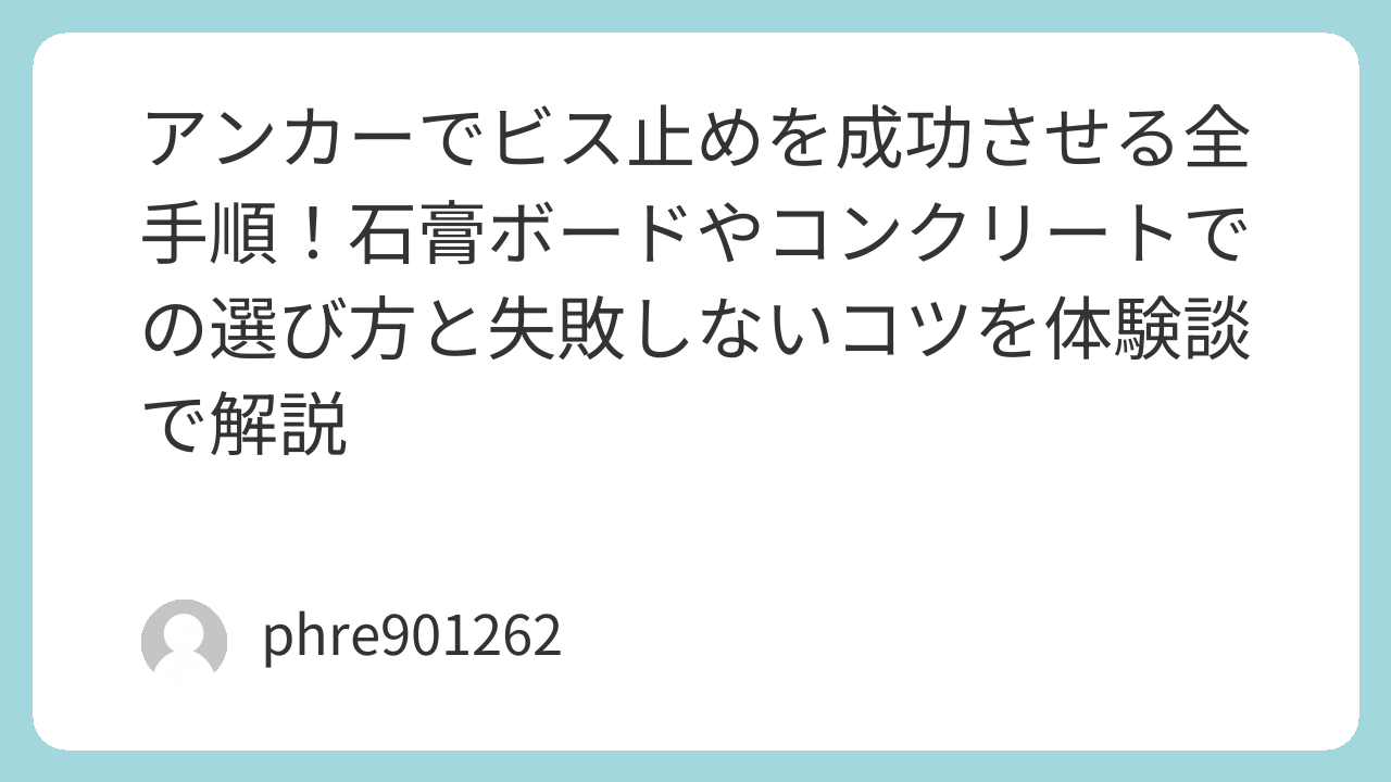 アンカーなら何でもいいわけではありません。壁の素材と、載せるものの重さで使い分けるのが「プロのDIY」への第一歩です。