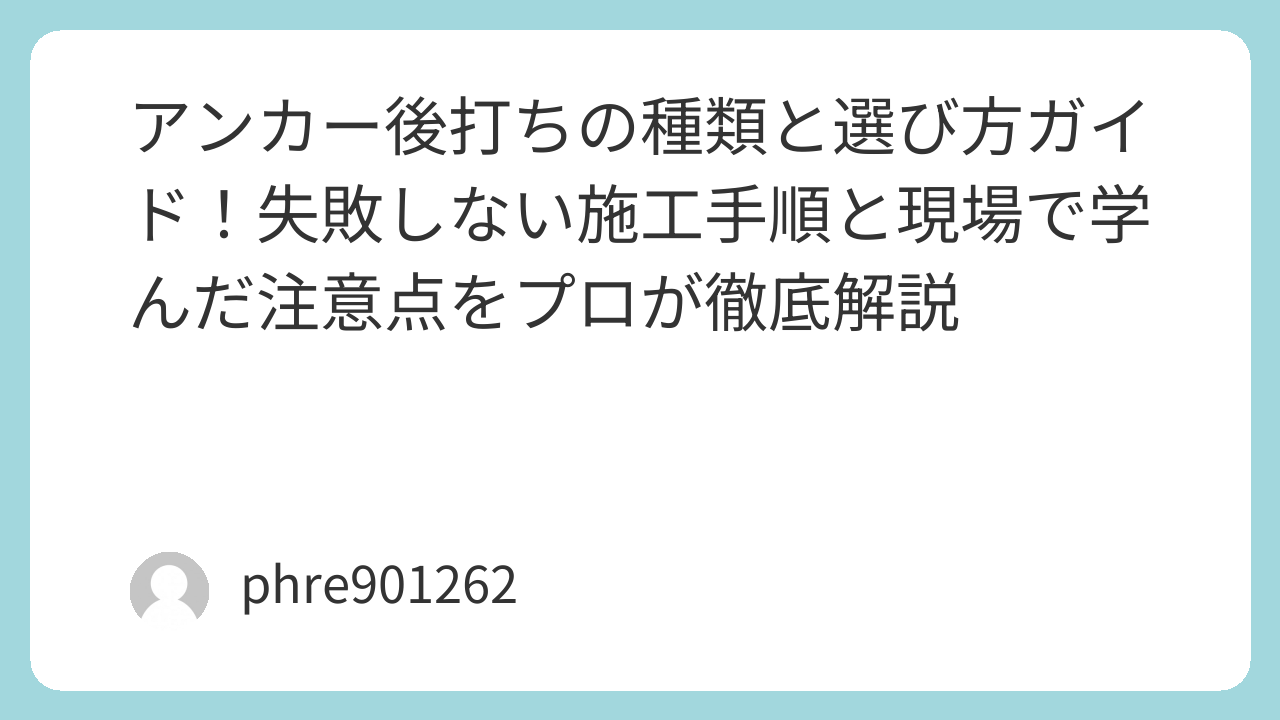 この記事では、数々の現場でコンクリートと格闘してきた経験をもとに、失敗しないアンカー後打ちのノウハウを、リアルな体験談を交えてお届けします。