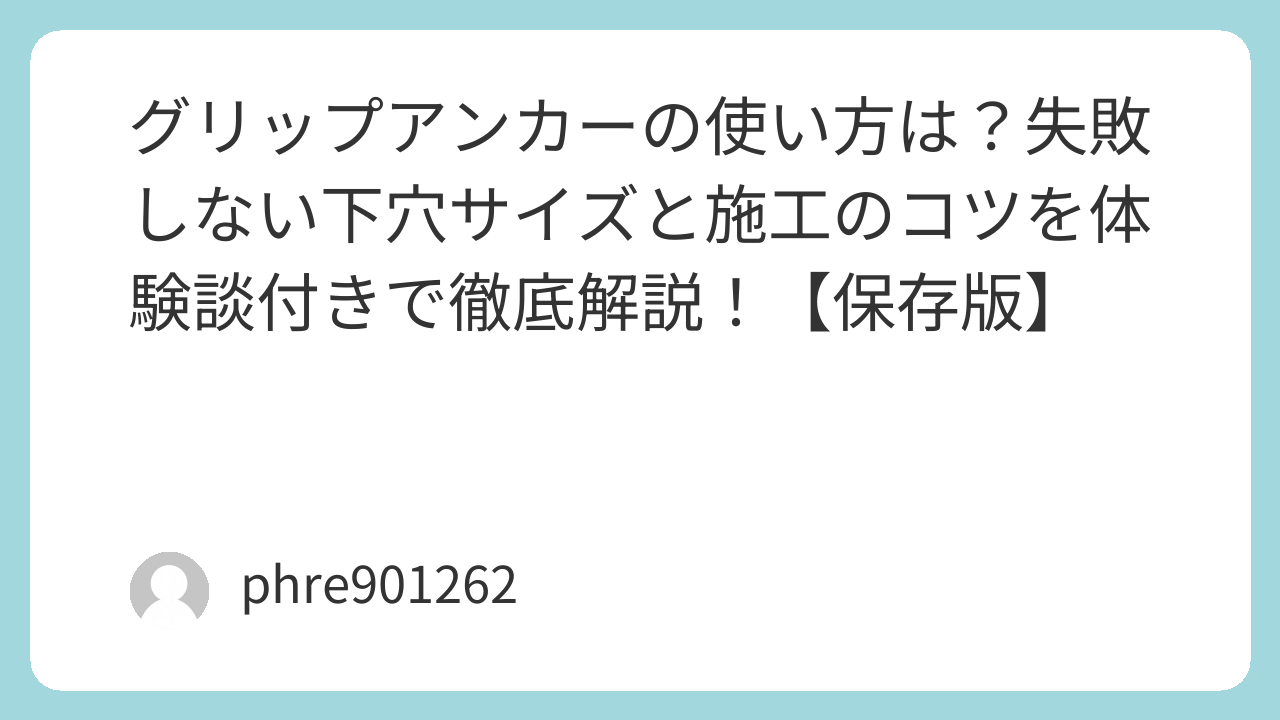 [amazon_link product=”グリップアンカー”]は、正しい知識と少しのコツさえ掴めば、これほど頼もしい味方はありません。プロの仕上がりを目指すなら、[amazon_link product=”デジタルノギス”]で穴の深さを測るくらいの慎重さがあっても良いでしょう。