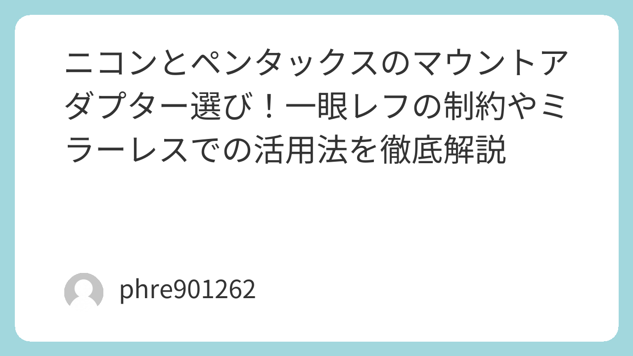 ニコンとペンタックスのマウントアダプター選び!一眼レフの制約やミラーレスでの活用法を徹底解説