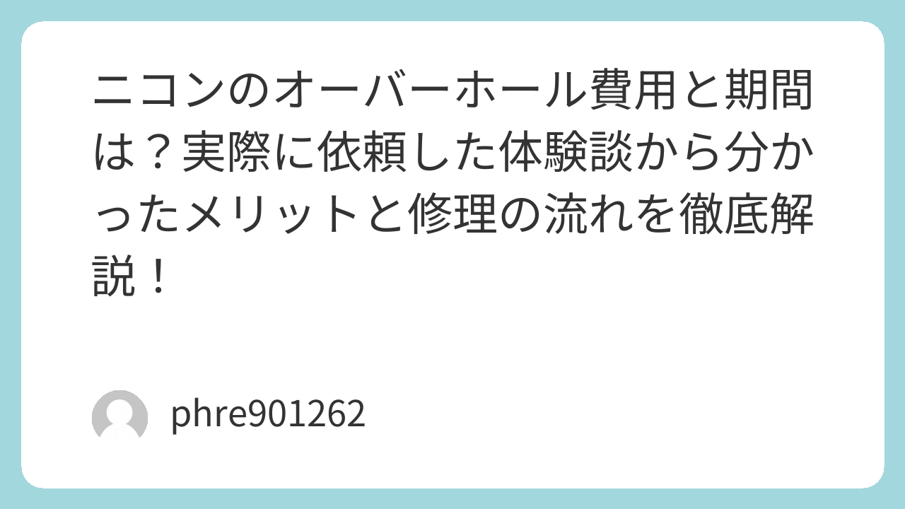 ニコンのオーバーホール費用と期間は?実際に依頼した体験談から分かったメリットと修理の流れを徹底解説!