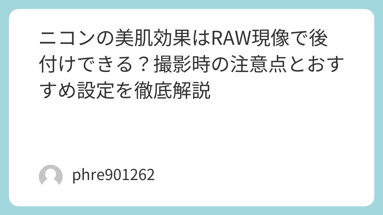 ニコンの最新機種に搭載された「美肌効果」機能。ポートレート撮影において、モデルさんの肌の質感を活かしつつ、気になる部分だけをソフトに整えてくれる魔法のような機能ですが、実はRAW撮影派こそ知っておかなければならない「罠」が潜んでいます。