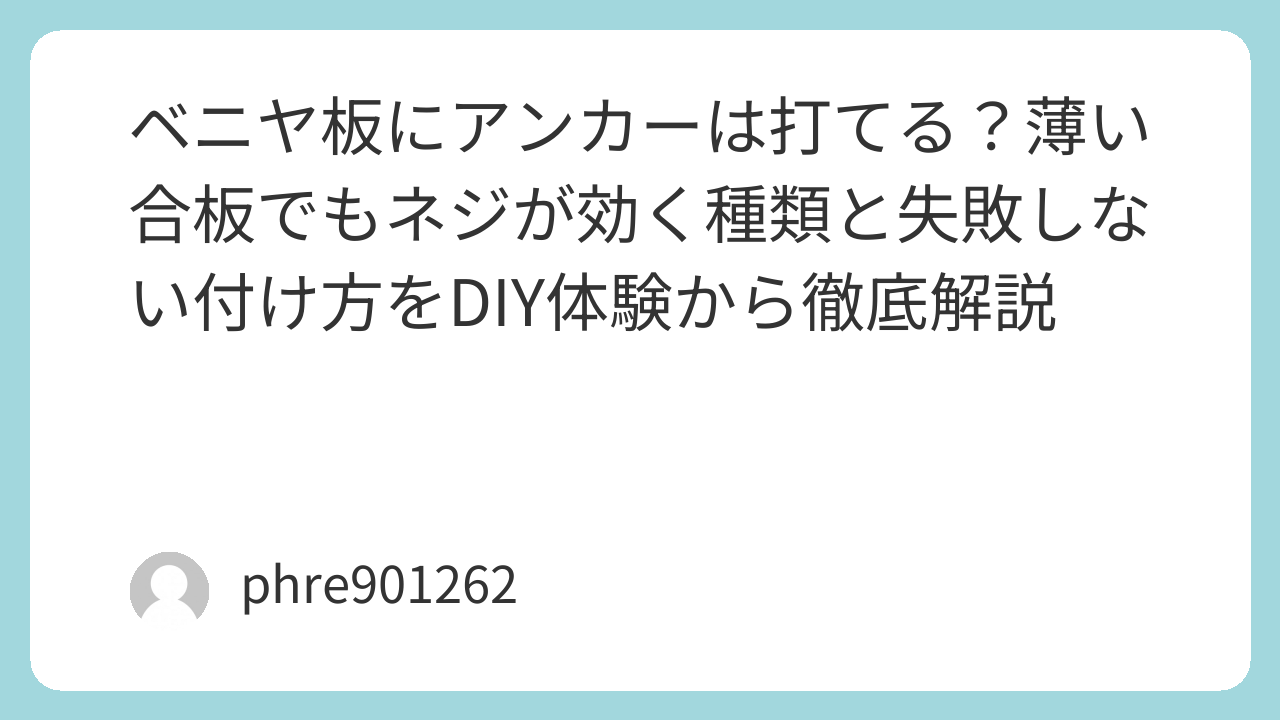 【実体験】ベニヤ板の厚さ別・おすすめアンカー厳選