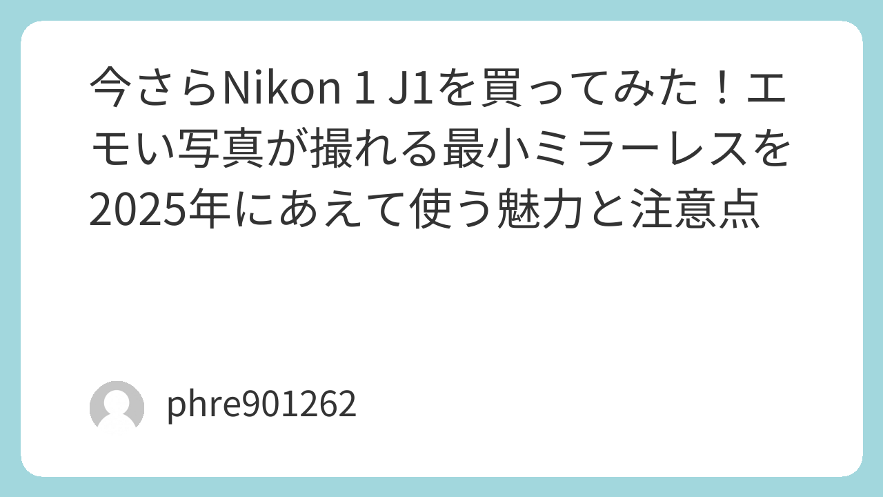 今さらNikon 1 J1を買ってみた!エモい写真が撮れる最小ミラーレスを2025年にあえて使う魅力と注意点