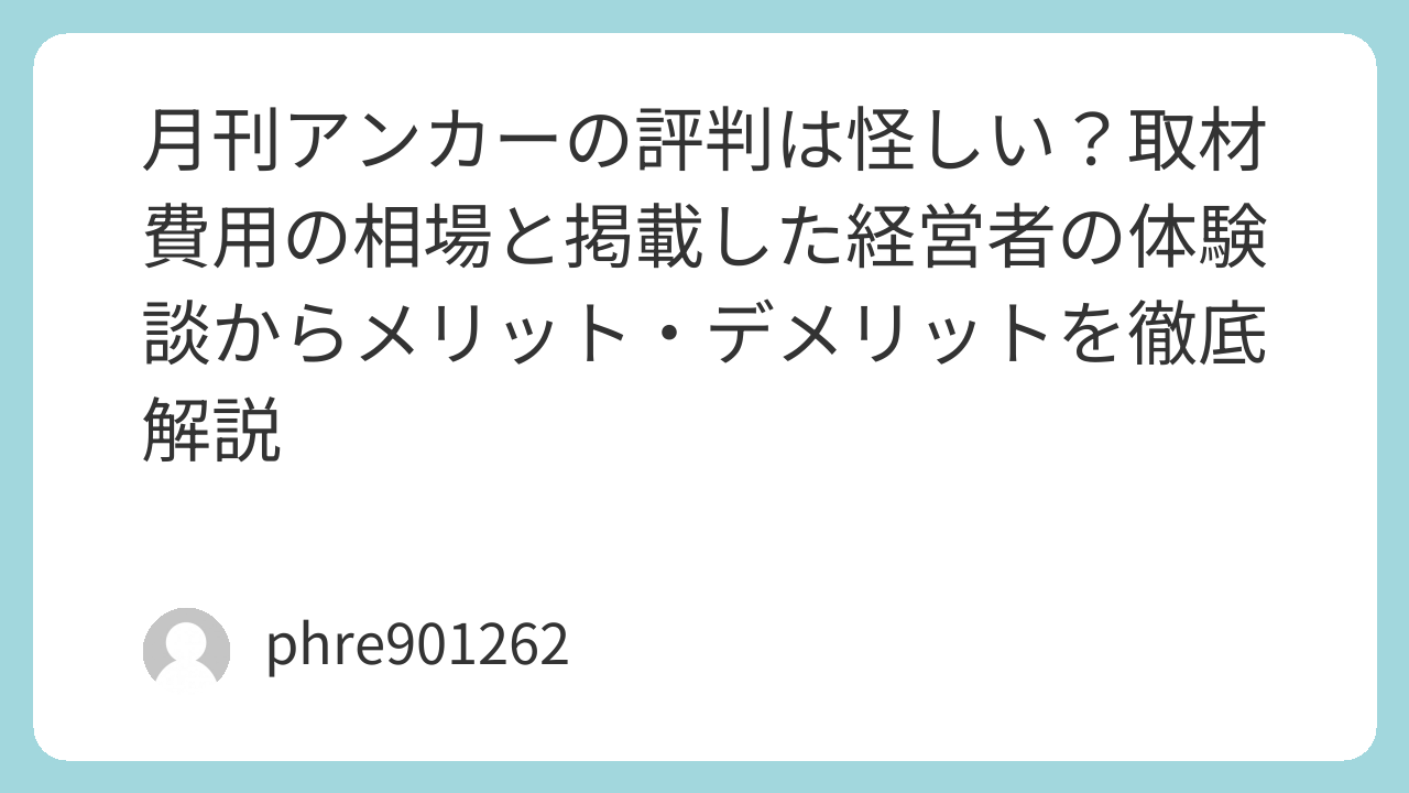 月刊アンカーの評判は怪しい?取材費用の相場と掲載した経営者の体験談からメリット・デメリットを徹底解説