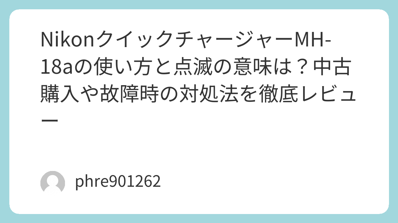 NikonクイックチャージャーMH-18aの使い方と点滅の意味は?中古購入や故障時の対処法を徹底レビュー