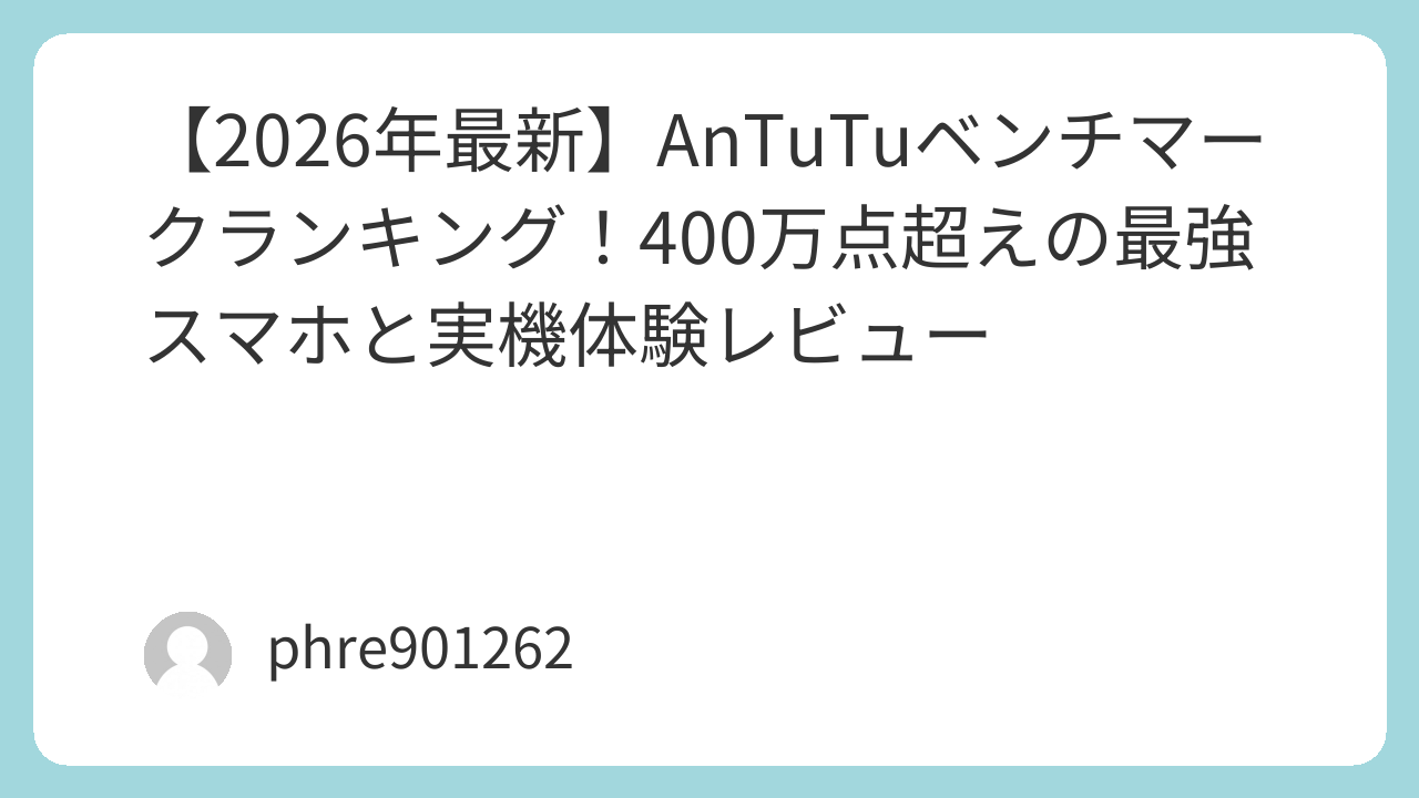 スマホの性能を測る究極の指標、AnTuTu Benchmark。2026年に入り、スマートフォンの性能進化はついに「400万点」という未踏の領域に突入しました。
