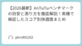 - MEMスコア: ストレージの読み書き速度です。実は「アプリの起動の速さ」や「写真一覧がパッと出るか」という日常のサクサク感に直結します。