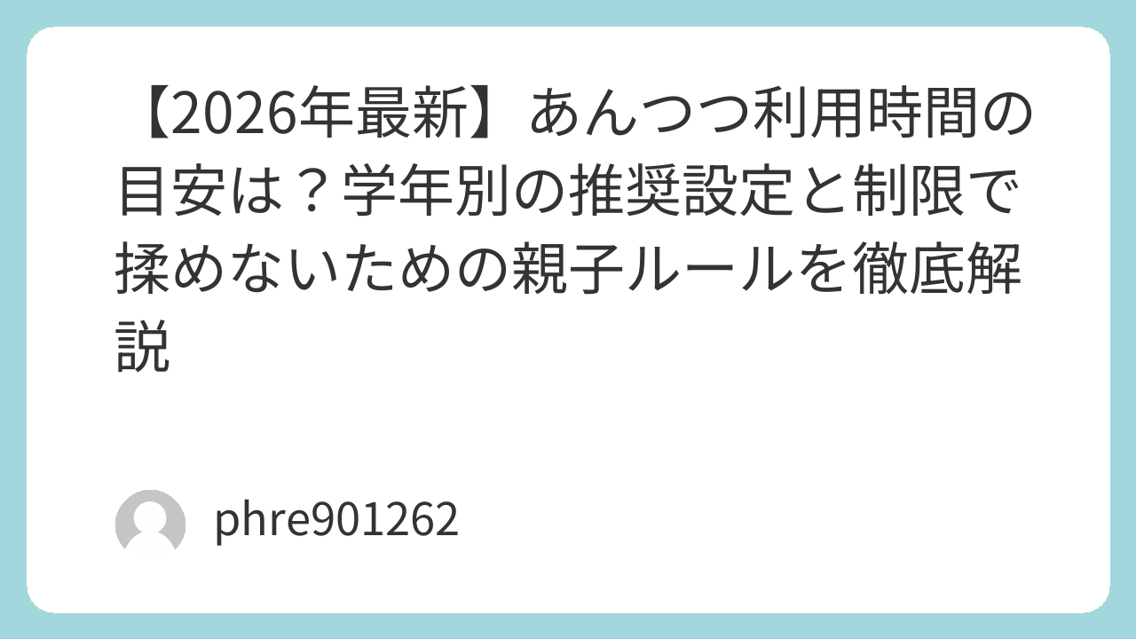 あんつつは、子供を縛る鎖ではなく、ネットの荒波から守るための「ライフジャケット」です。お子さんの成長に合わせて、最適な目安をアップデートし続けていきましょう。