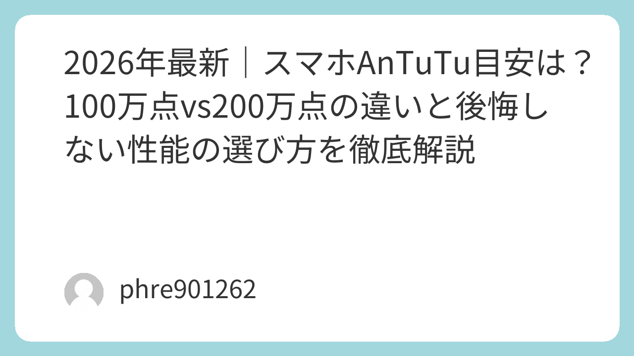 2026年最新|スマホAnTuTu目安は?100万点vs200万点の違いと後悔しない性能の選び方を徹底解説