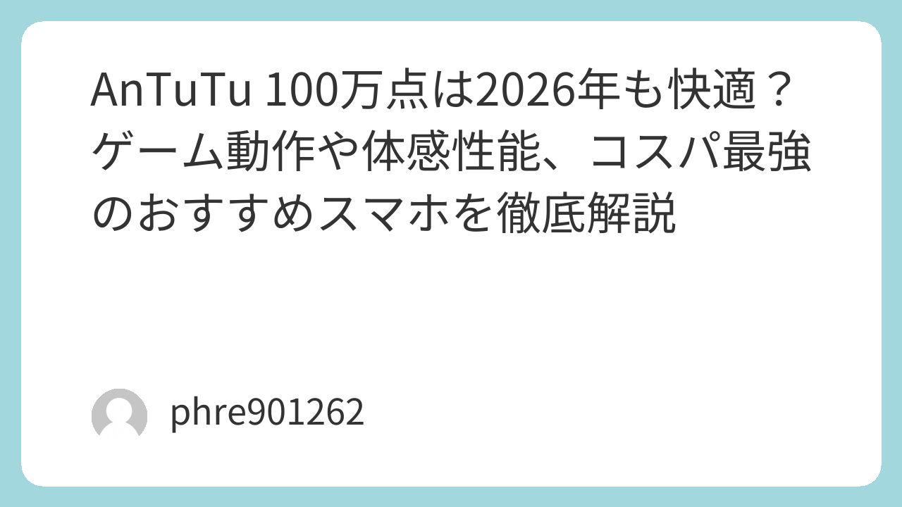 「スマホの性能を測るならAnTuTuスコア」という常識は、2026年になった今も変わりません。しかし、ハイエンドモデルが400万点の大台を突破する中で、「100万点」という数字にどのような価値があるのか不安に思う方も多いでしょう。