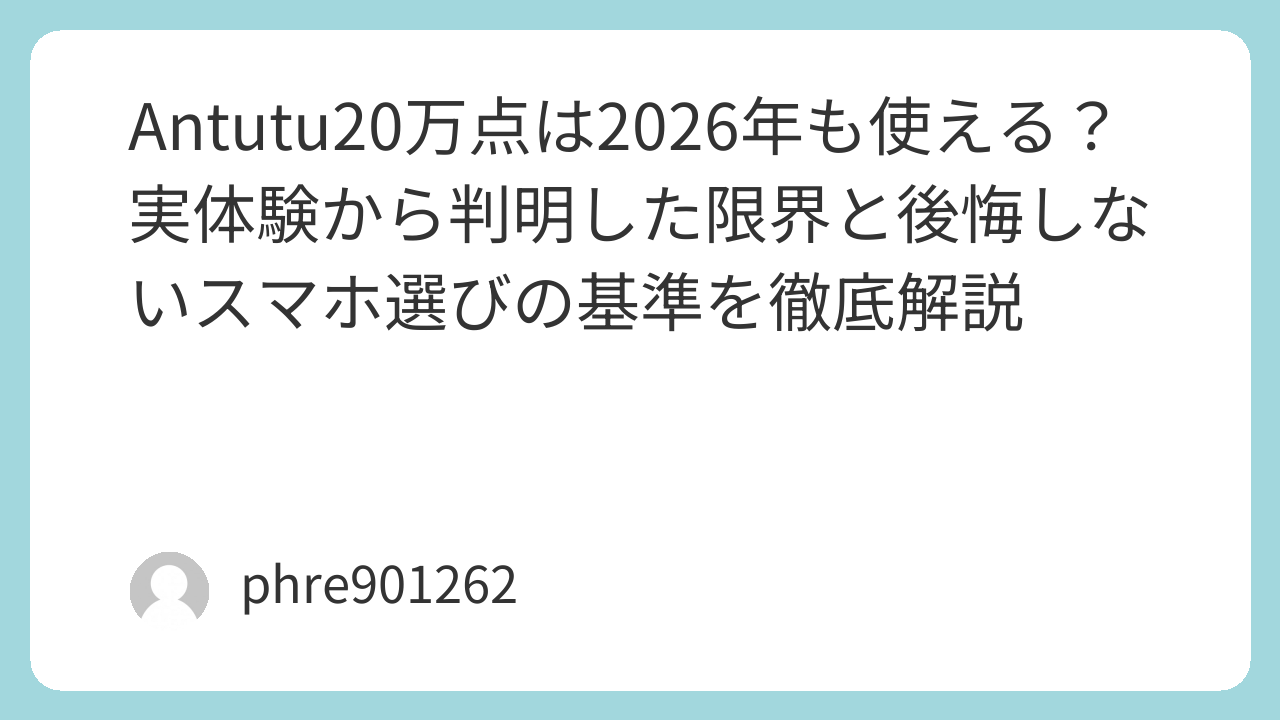 「AnTuTuスコア20万点」という数字。数年前ならミドルレンジの代名詞でしたが、アプリの肥大化が進んだ2026年現在、このスコアのスマホをメインで使うのは正直なところ「修行」に近い感覚かもしれません。