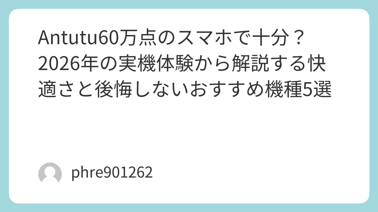 Antutu60万点のスマホで十分?2026年の実機体験から解説する快適さと後悔しないおすすめ機種5選
