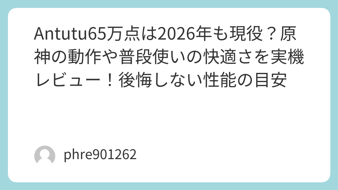 Antutu65万点は2026年も現役?原神の動作や普段使いの快適さを実機レビュー!後悔しない性能の目安