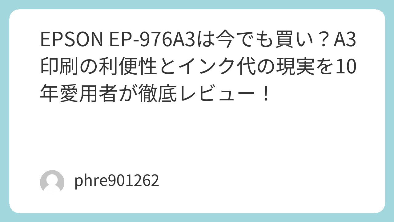 10年経っても色褪せない「A4サイズでA3が刷れる」というコンセプト。壊れるその日まで、私はこの相棒を使い倒すつもりです。もし中古で状態の良い[amazon_link product=”EP-976A3″]を見つけたら、それは一つの「出会い」かもしれません。