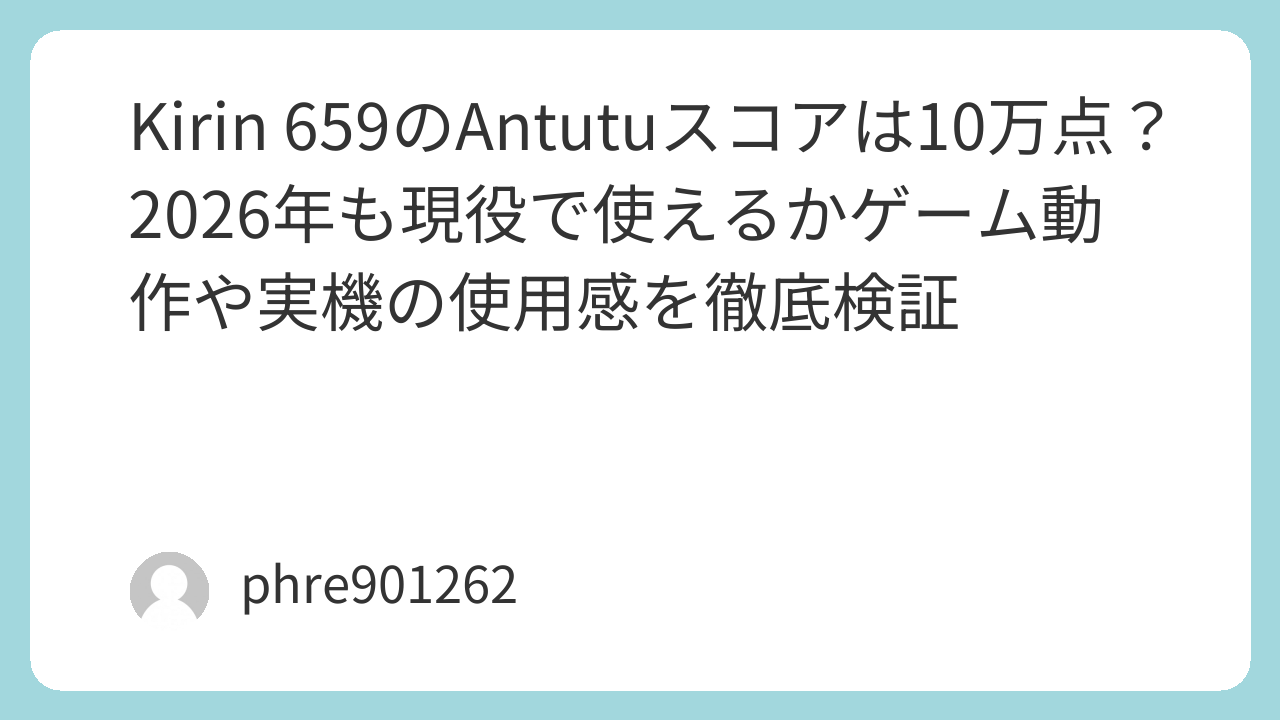 まず結論から言うと、Kirin 659のAntutuベンチマーク(V8/V9基準)の総合スコアは約10万点〜12万点前後です。