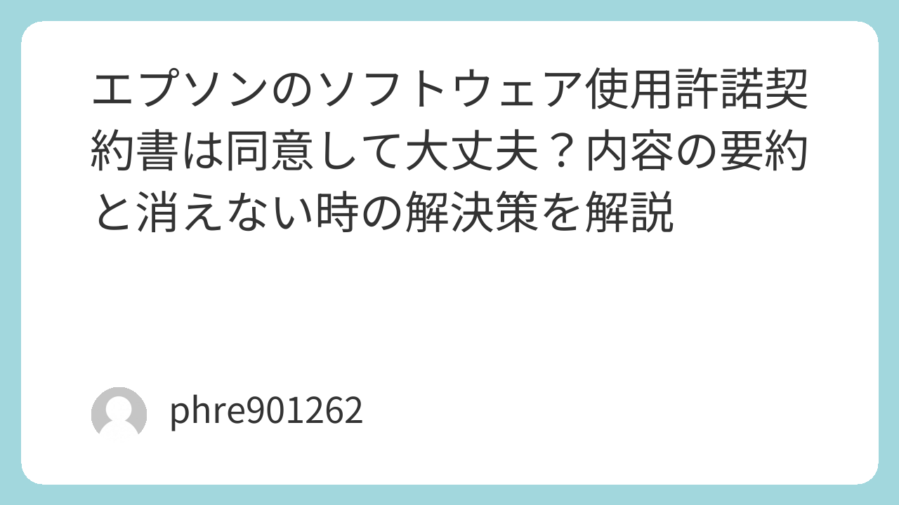 エプソンのソフトウェア使用許諾契約書は同意して大丈夫?内容の要約と消えない時の解決策を解説