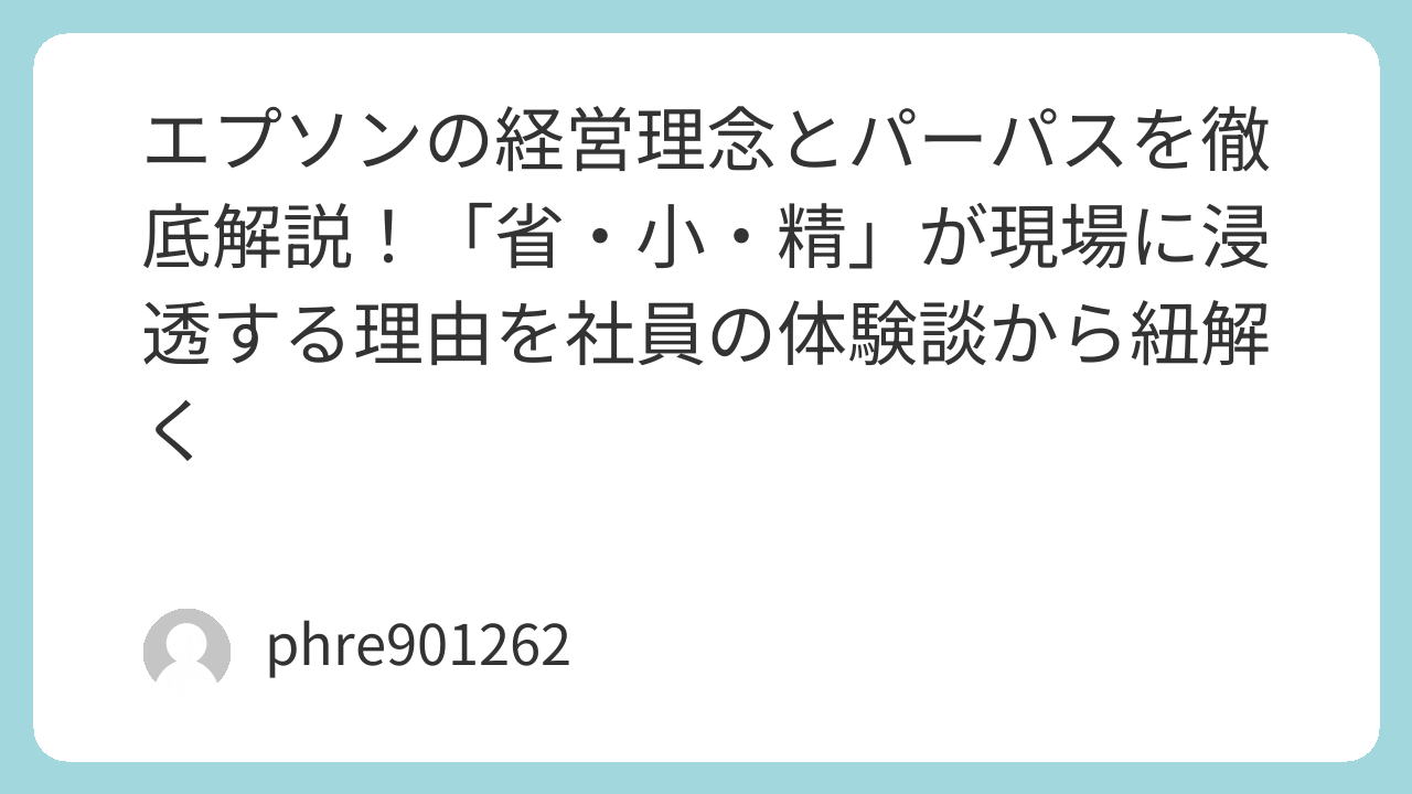 単なるお題目の唱和に終わらない、エプソンの深い哲学と、それが現場でどう体現されているのかを、実体験に基づいた視点で深掘りします。