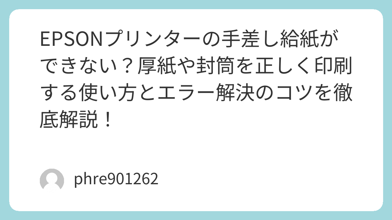 「年賀状を厚手の和紙で作りたい」「仕事で使う封筒を数枚だけ印刷したい」。そんな時に便利なのがEPSONの「手差し給紙」ですが、いざ使おうとすると「用紙がありません」という無情なエラーに悩まされることが少なくありません。