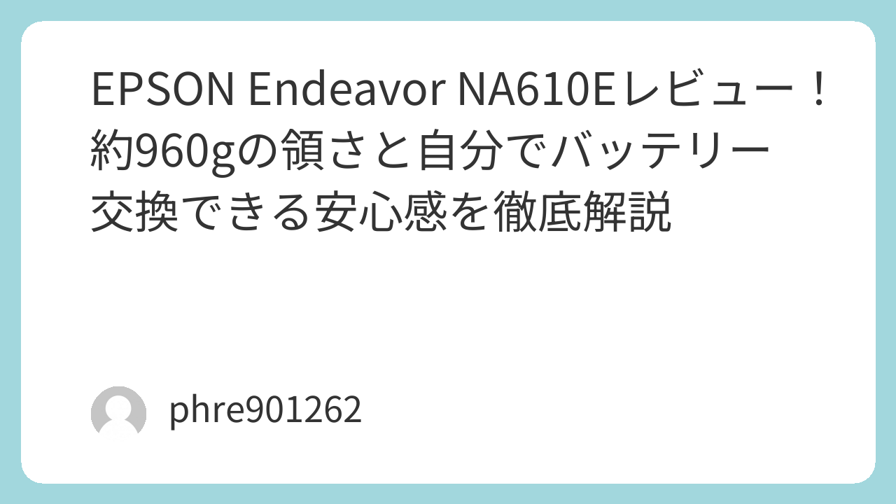 外回りや出張が多いビジネスパーソンにとって、PCの「軽さ」は正義です。しかし、薄型軽量モデルほどバッテリーが内蔵型で、劣化すると高額なメーカー修理に出すしかないのが悩みどころでした。エプソンの[amazon_link product=”Endeavor NA610E”]を実際に手に取ってみて、私が真っ先に感じたのは「ようやく道具として完成された相棒に出会えた」という確信です。