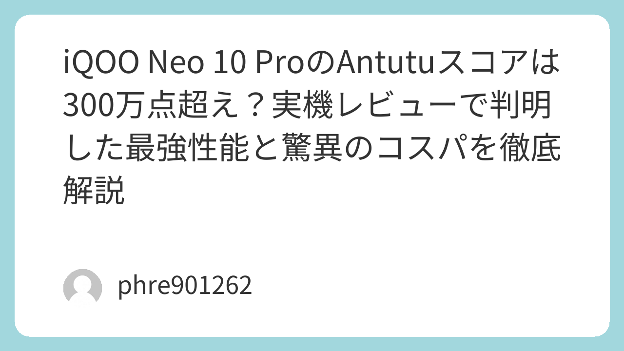 iQOO Neo 10 ProのAntutuスコアは300万点超え?実機レビューで判明した最強性能と驚異のコスパを徹底解説