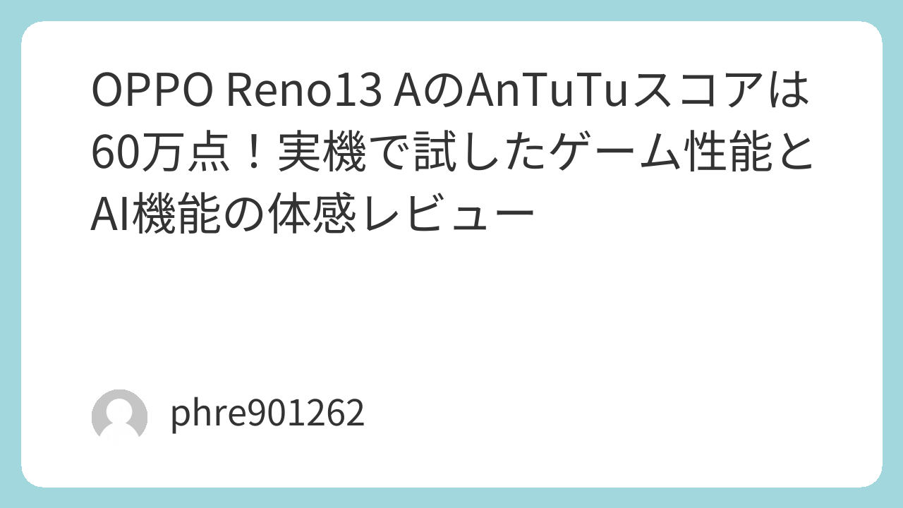 「コスパ最強」の代名詞ともいえるRenoシリーズから、待望の最新モデル[amazon_link product=”OPPO Reno13 A”]が登場しました。スマホ選びで真っ先に気になるのが「AnTuTuベンチマークの数値」ですが、実は今回の[amazon_link product=”OPPO Reno13 A”]、数値以上に「使い心地の進化」が凄まじいことになっています。