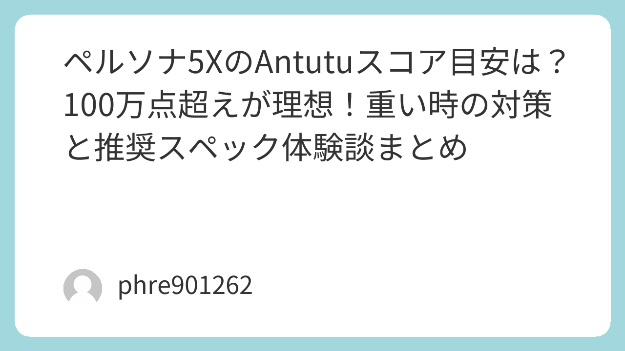 もしあなたが「これからP5Xを最高の環境で遊びたい」と考えているなら、Antutuスコア100万点という数字を一つの基準にしてください。