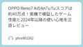 | [amazon_link product=”OPPO Reno11 A”] | 約60万〜70万点 | 一般ユーザー | SNSや動画視聴は極めて快適。3Dゲームは中設定。 |