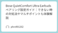 私の場合、初回設定時にスマホ側のBluetooth設定画面に「LE-Bose Ultra」といった複数の候補が出て迷いました。ここでは焦らず、アプリ経由で設定を行うのが一番確実です。もし不安定になったら、一度スマホのBluetooth設定からデバイスを削除し、ケースのボタンを25秒間長押ししてリセットをかけると、驚くほどスムーズに再接続されます。
