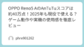 • 正直、厳しい:『原神』や『崩壊:スターレイル』。最低画質まで落とせば動きますが、エフェクトが重なる戦闘シーンではフレームレートがガクッと落ちます。これらのゲームをガチでプレイするなら、もう少し予算を上げて[amazon_link product=”OPPO Reno11 A”]などを検討すべきでしょう。
