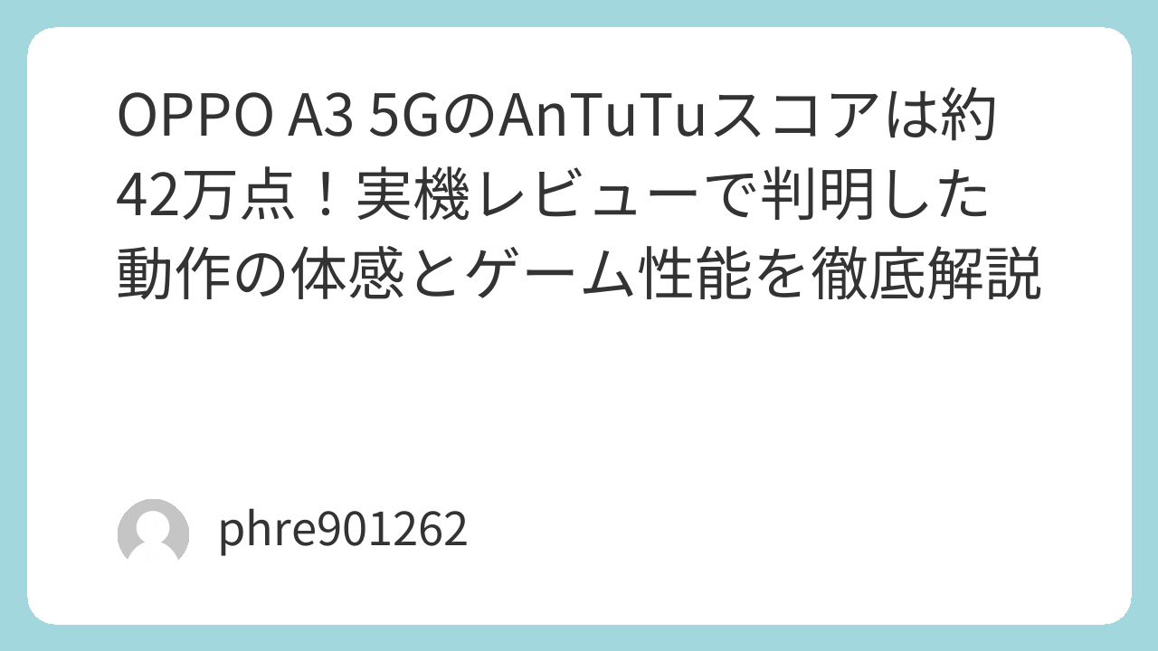 OPPO A3 5GのAnTuTuスコアは約42万点!実機レビューで判明した動作の体感とゲーム性能を徹底解説