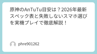 「原神をスマホで始めたいけど、カクカクして遊べないのは嫌だ」「今使っているスマホのスコアで、ナタや新マップが快適に動くか不安」そんな悩みを持つ方のために、2026年現在の最新環境に基づいた「原神を快適に遊ぶためのAnTuTuスコア目安」を徹...