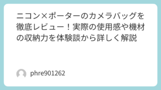 ニコンとポーターのコラボバッグを徹底レビュー!カメラ愛好家が絶賛する使用感と廃盤モデルの選び方カメラを抱えて街に出る。その時、いかにも「カメラバッグです」という四角いナイロンの塊を肩に下げるのは、少し気恥ずかしいと感じることがありました。そ...