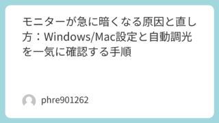 夜に作業していて、さっきまで普通だった画面が急に暗くなる。動画を開いた瞬間だけ落ちる。しばらくするとジワっと暗くなる。こういう「暗くなる」は、故障よりも先に“自動で暗くする仕組み”が働いていることが多い。しかも厄介なのは、モニター本体とPC...