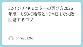 未分類 32インチ4Kモニターの選び方2026年版:USB-C給電とHDMI2.1で失敗回避するコツ
