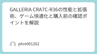 コラボPCを探して「GALLERIA CRA7C-R37 Crazy Raccoon コラボモデル」にたどり着いた人が最初に気になるのは、通常のゲーミングPCと何が違い、いま選んでも満足できるかという一点だ。結論としては、ベース性能の堅実さ...