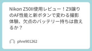 未分類 Nikon Z50II使用レビュー!Z9譲りのAF性能と新ボタンで変わる撮影体験、欠点のバッテリー持ちは救えるか?